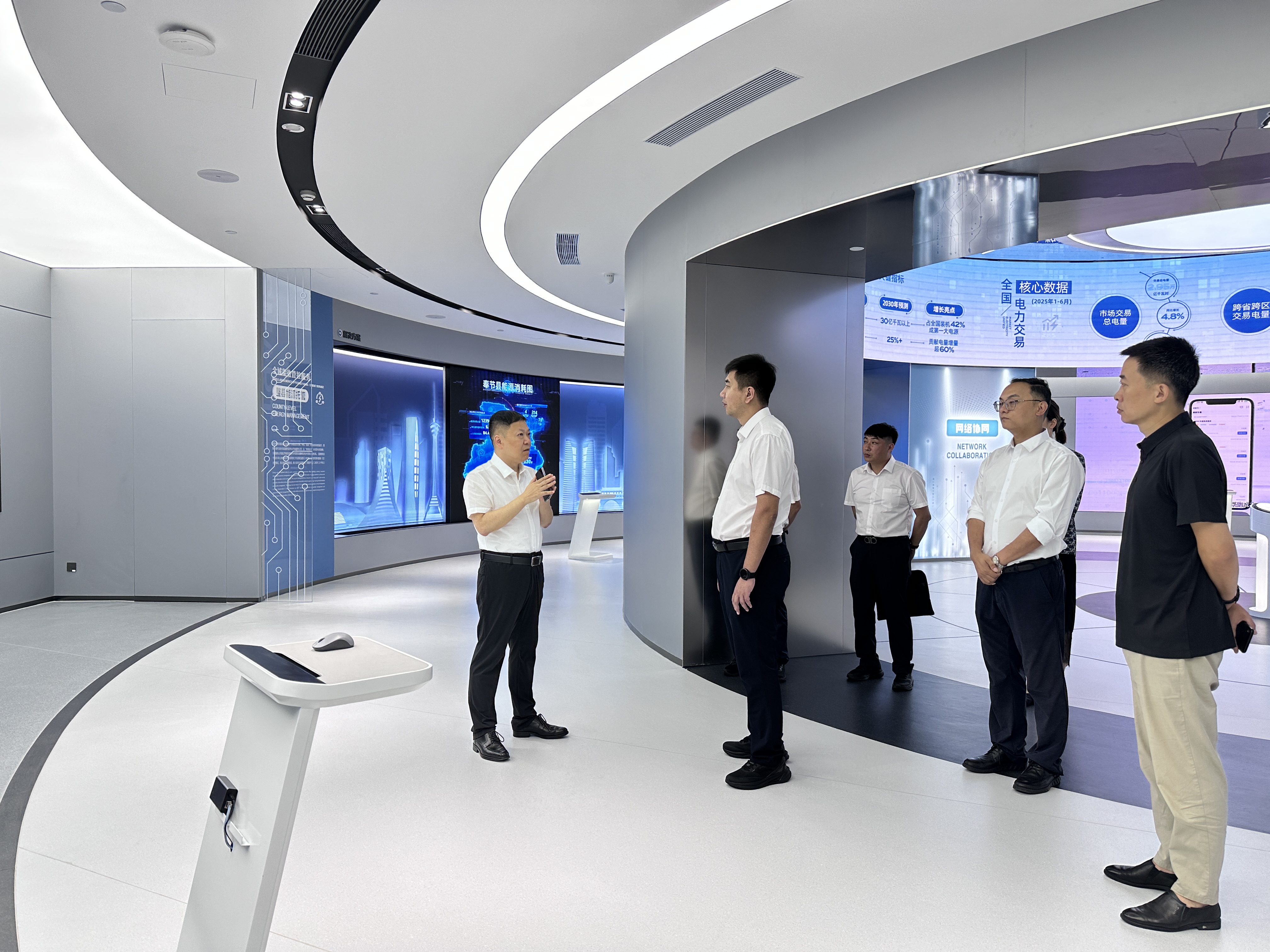 袁俊一行参观了智网AI中心展厅,深入了解公司在人工智能与能源数字化领域的业务布局与实践成果。座谈会上,公司负责人重点介绍了量子虚拟电厂的技术创新与应用前景。他表示,当前国家正积极构建新型电力系统、加快建设统一电力市场,全社会用电量已突破10万亿千瓦时。在此背景下,智网公司扎实推进“量子虚拟电厂全国织网启航行动”,通过“能源+量子+AI”技术融合,帮助用户实现精准用电与成本优化,助力公用事业单位实现“降电价、降能耗、降管理成本”,为数字城市和数字中国建设提供有力支撑。